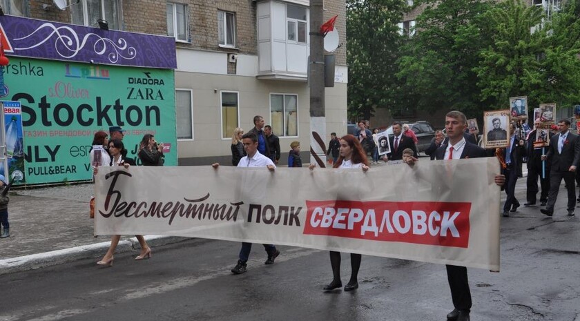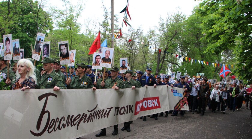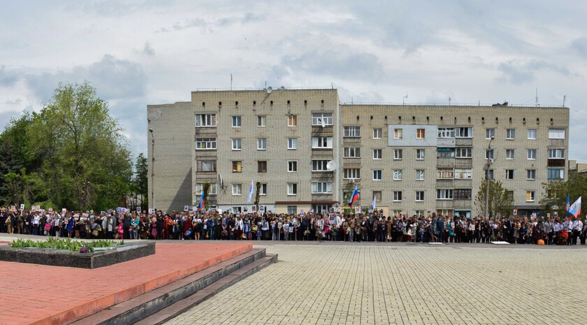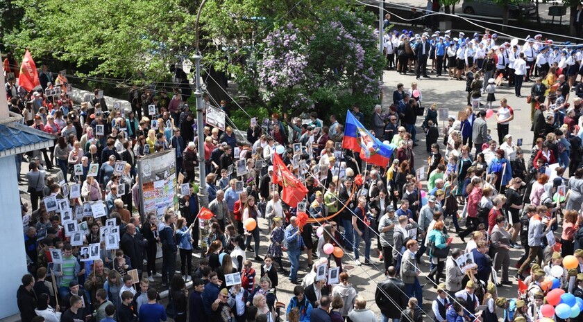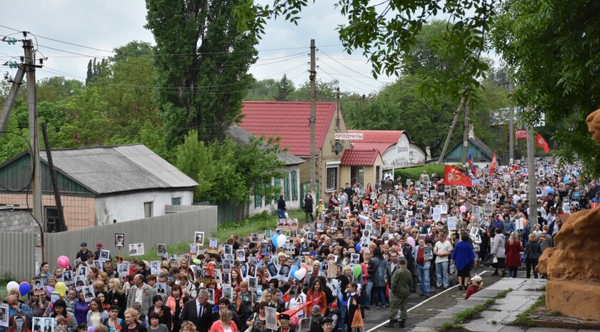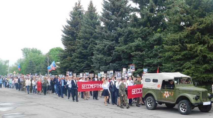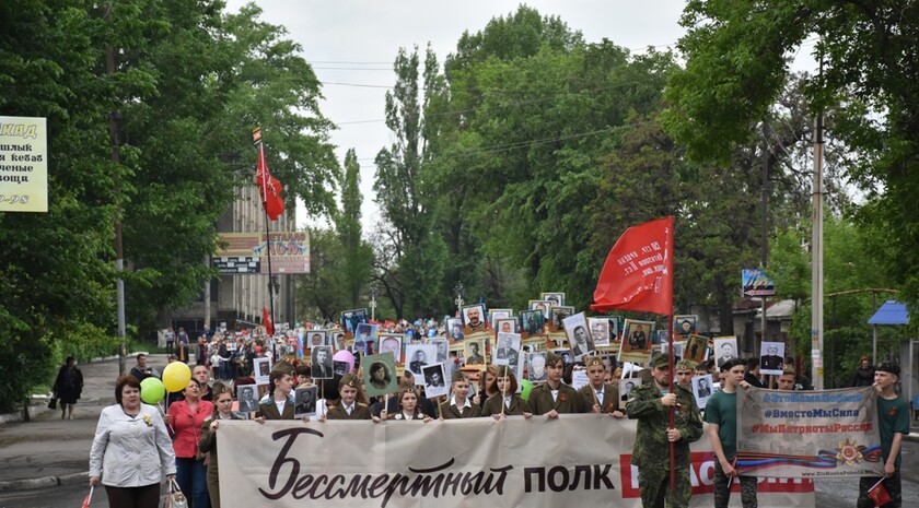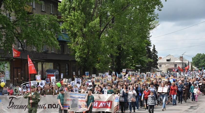 "Бессмертный полк" прошел не только в Красном Луче, но и в городах и поселках, подведомственных городской администрации – в городах Вахрушево, Петровское, Миусинск, поселках Запорожье, Софиевский, Хрустальное, Штеровка.