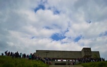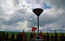 Краснодонцы почтили память погибших героев минутой молчания, после чего участники Республиканской Вахты Памяти возложили гирлянду Славы на могилу молодогвардейцев и к стеле "Скорбящая мать".