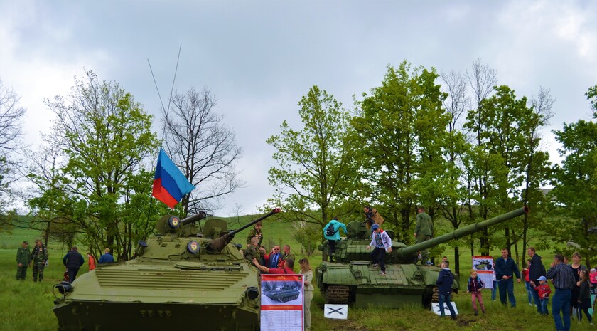 Военнослужащие Народной милиции организовали выставку военной техники.