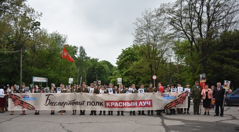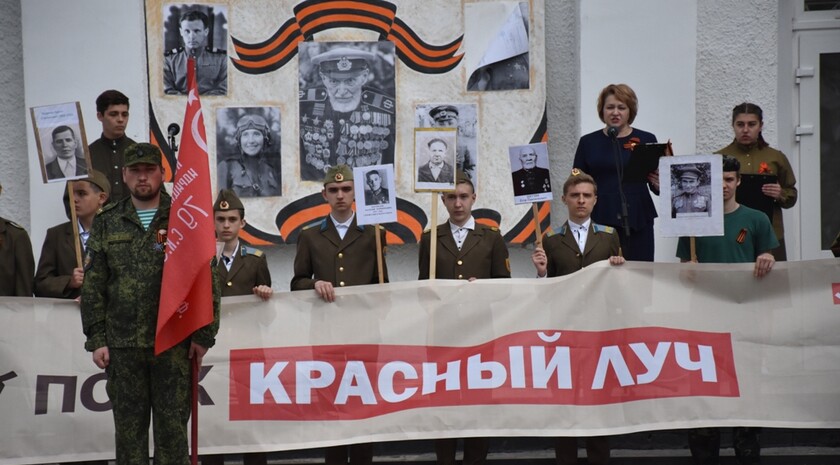 После митинга по Площади собраний мемориального комплекса боле пяти тысяч краснолучан и гостей города прошли маршем "Бессмертного полка" с фотографиями своих родных и близких – ветеранов армии и флота, тружеников тыла, узников концлагерей, блокадников, детей войны, воинов-интернационалистов, участников войны в Донбассе. В это же время по центральной улице Красного Луча начал движение еще один поток "Бессмертного полка", в котором также прошли более пяти тысяч человек.