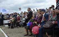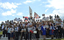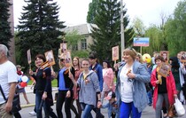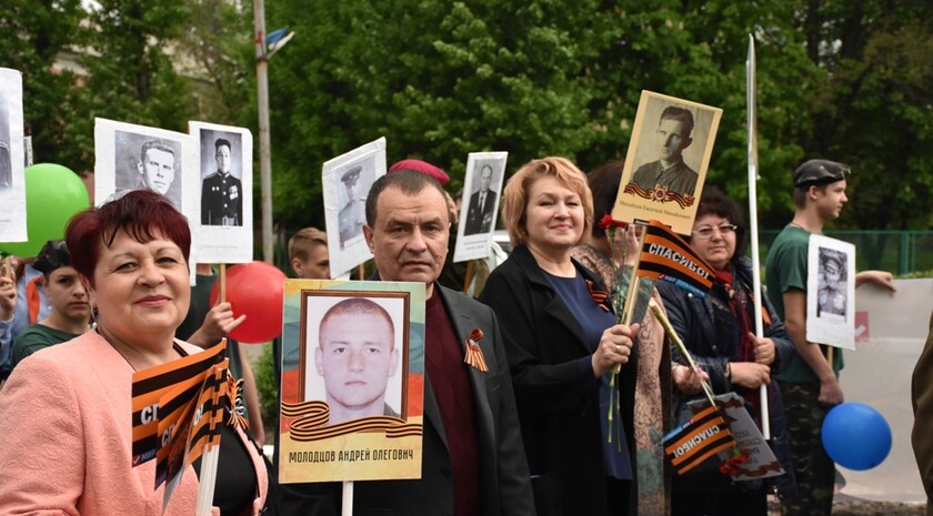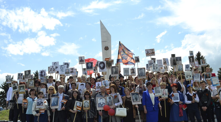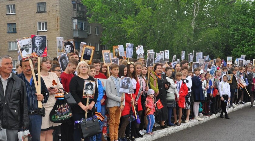 После митинга жители города с фотографиями своих близких, погибших на различных войнах, приняли участие в шествии "Бессмертного полка".