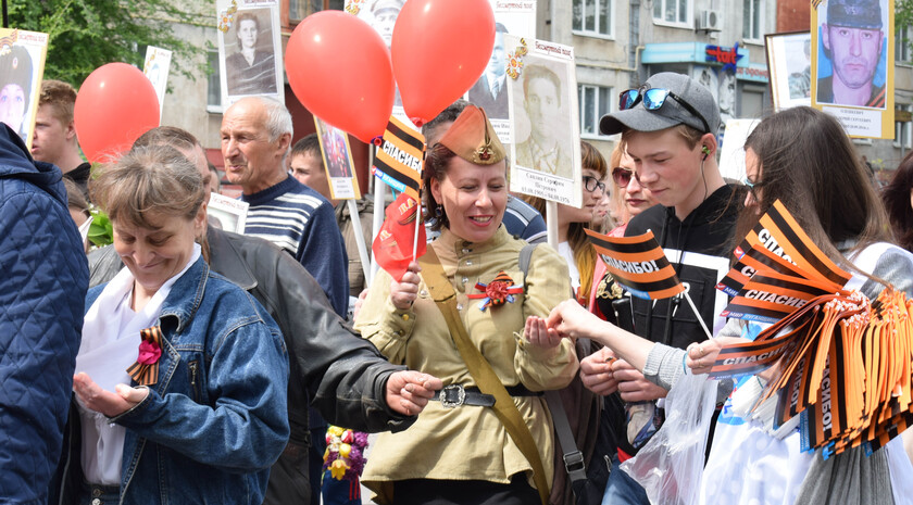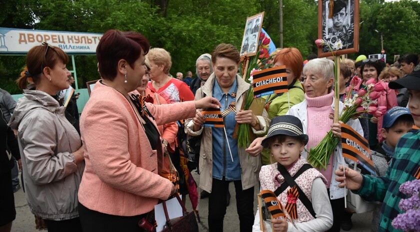 Кроме того, активисты ерриториального отделения общественного движения (ОД) "Мир Луганщине" и участники проекта "Молодая гвардия" в рамках республиканской акции "Георгиевская лента" раздали жителям Первомайска и поселков Калиново и Золотое-5 более одной тысячи георгиевских ленточек.