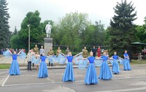 Затем более 200 юных артистов из творческих коллективов Краснодонского дворца культуры имени "Молодой гвардии" представили собравшимся театрализованное представление "Дадим шар земной детям".