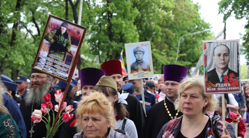 После парада Пасечник возглавил шествие "Бессмертного полка", в котором приняли участие более 60 тыс. жителей Луганщины. Прибывшие в Республику для участия в мероприятиях к 9 Мая иностранные гости пронесли в колонне "Бессмертного полка" в Луганске фото погибших в ЛНР в результате обстрелов ВСУ детей.