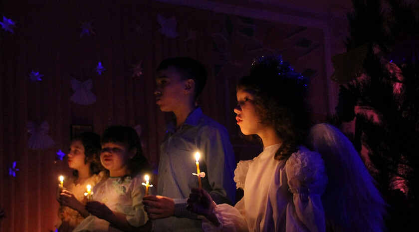 Театральную постановку о святом Николае для подопечных отделения социальной реабилитации детей-инвалидов Перевальского районного комплексного центра обслуживания населения представил коллектив Артемовской гимназии № 7.
