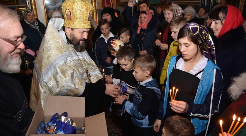 Протоиерей отец Сергий рассказал детям и прихожанам историю праздника и о чудесных делах Николая Чудотворца. После литургии он благословил ребят и вручил им сладкие подарки. Кроме того, храм оказал материальную помощь двум семьям, воспитывающим приемных детей.
