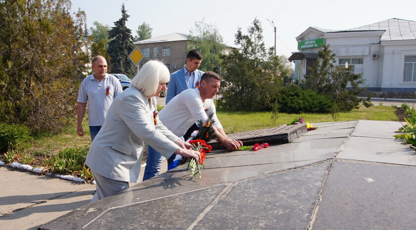 Торжественное возложение цветов прошло в Ровеньках у мемориального комплекса "Слава". В церемонии приняли участие глава горадминистрации Андрей Рубанцов, общественники и неравнодушные ровеньчане.