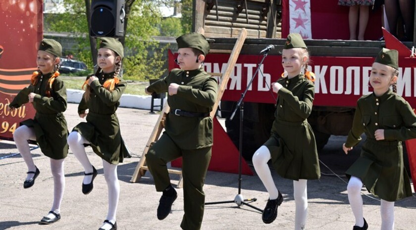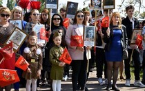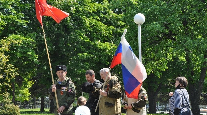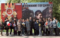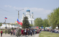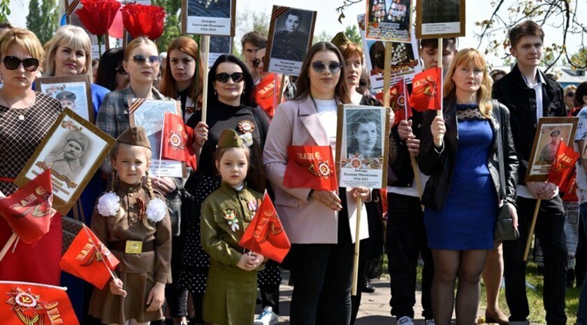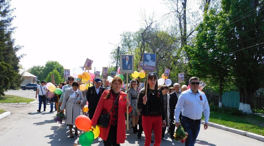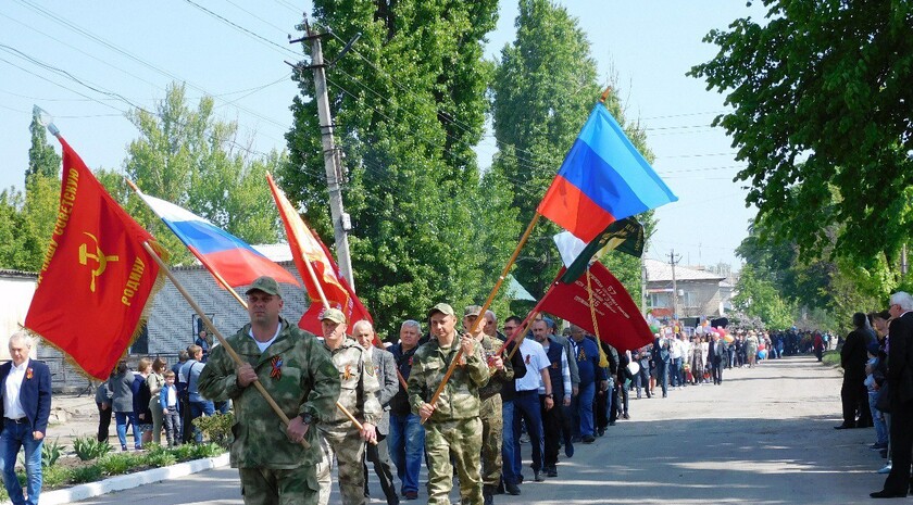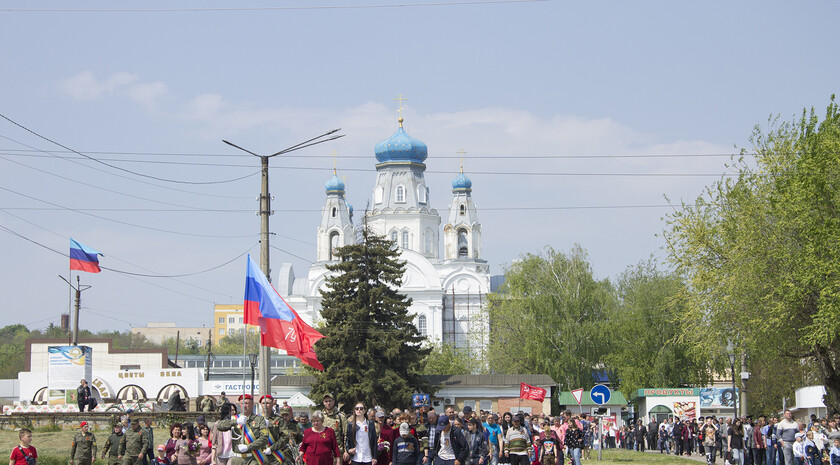 В центре освобожденного поселка городского типа Марковка впервые за последние восемь лет прошло шествие "Бессмертного полка".