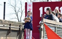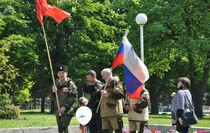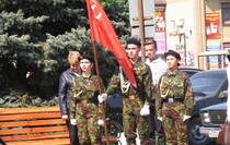 Почетное право поднять копию Знамени Победы на центральном флагштоке города было предоставлено члену военно-патриотического клуба "Вымпел" Владиславу Величко и ветерану Великой Отечественной войны Тамаре Маляренко.