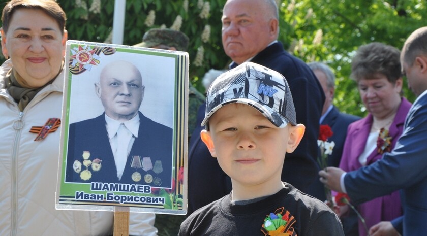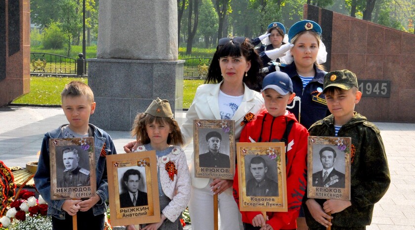 В многолюдном праздничном шествии на центральной аллее сквера приняли участие ветераны Великой Отечественной войны, участники военно-патриотического движения "Молодая гвардия - Юнармия", представители трудовых коллективов, школьники города. Юнармейцы несли в руках портреты земляков – героев Советского Союза Николая Бабанина, Ивана Депутатова, Петра Липовенко, Владимира Снесарева, Василия Киселева, Мечеслава Луговского, Ивана Меркушева, Василия Недбаева, Вячеслава Чемодурова и полного кавалера орденов Славы Виктора Кривоногова.