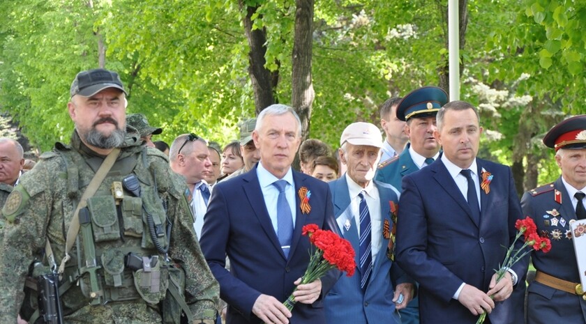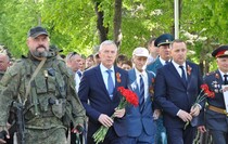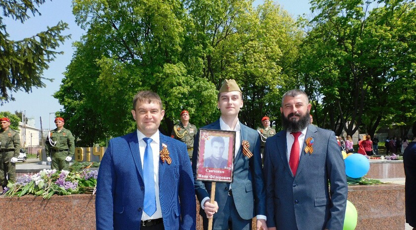 "Сегодня грустный и одновременно радостный день для каждого из нас. Священный праздник мы встречаем со слезами на глазах, вспоминая тех, кто погиб в 1941-1945 годах, вспоминая тех, кто гибнет и сегодня, защищая наши дома и семьи, женщин и детей. Они умирают за то, чтобы нынешнее и будущее поколения жили под мирным небом в сильном и едином государстве - России. Как бы сложно ни было сейчас, мы свято верим - победа будет за нами, ведь мы защищаем свою землю, а не приехали за тысячи километров из Львовской или Тернопольской областей", - сказал глава администрации Стаханова Сергей Жевлаков.