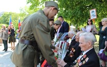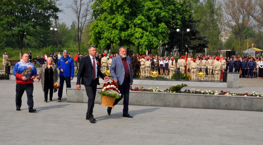 Глава администрации Свердловска и района, председатель теротделения ОД "Мир Луганщине" Андрей Сухачев поблагодарил ветеранов за победу, за то, что "отстроили разрушенную страну, что учили жить, трудиться и любить свою землю".