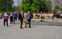 Митинг "Равнение – на знамя Победы" с участием представителей руководства Краснодона и Краснодонского района, духовенства, общественности прошел на городской площади имени "Молодой гвардии".