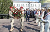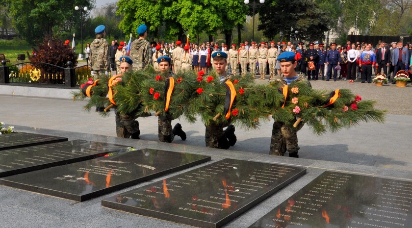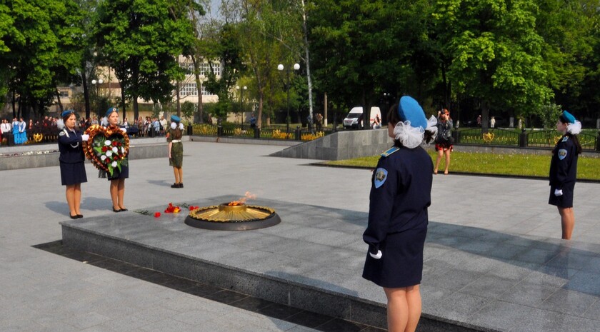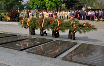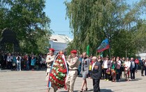 Церемония возложения венков и цветов состоялась в прифронтовом городе на площади Боевой Славы.