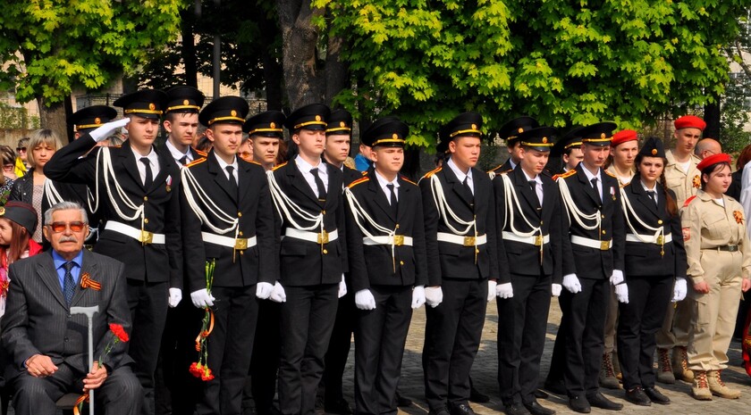 "В почетном карауле застыли кадеты, ярким пламенем горел Вечный огонь, свердловчане пришли с цветами и портретами своих предков-победителей, чтобы отдать дань памяти их подвигу. Впереди на почетных местах сидели те, чье детство в 40-е годы прошлого столетия опалила страшная война. Чеканя шаг, промаршировали кадеты со знаменами, прозвучал Государственный гимн ЛНР", - рассказали в горрайонной администрации.