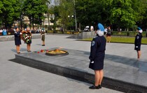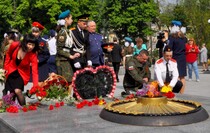 Краснодонцы возложили цветы к стеле "Скорбящая мать", могиле молодогвардейцев, мемориалу "Непокоренные" и к Вечному огню на аллее Защитников Родины.