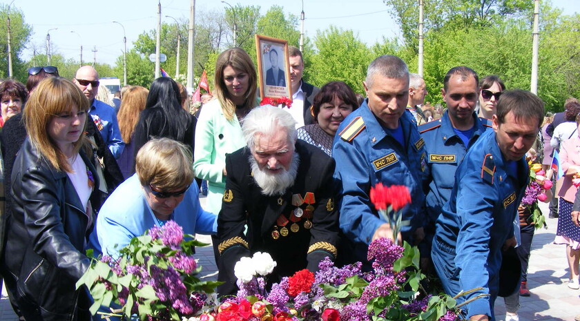 Праздничный митинг состоялся в освобожденном от киевских силовиков поселке городского типа Новоайдар. У Вечного огня и памятника Воинам-освободителям выступили представители местной администрации, состоялась панихида по погибшим, а после жители возложили цветы к мемориальным плитам.