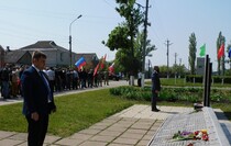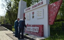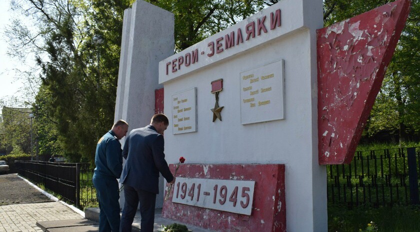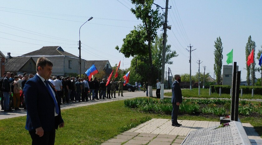 Гизай и командир отдельного комендантского полка Народной милиции ЛНР Сергей Грачев возложили цветы к братским могилам советских воинов в селе Гречишкино и к памятному знаку летчику-истребителю, Герою Советского Союза Павлу Истрашкину, в честь которого названа главная улица села.