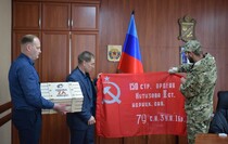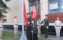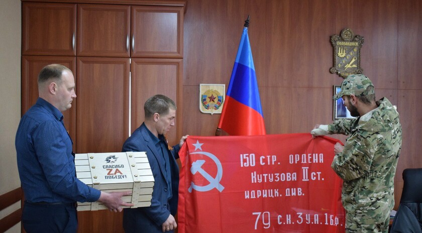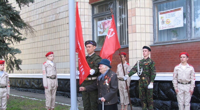 Ветераны Великой Отечественной войны в рамках республиканской акции "Живая память поколений" передали молодому поколению Лутугинщины копию Знамени Победы.