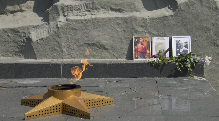 Торжественное зажжение привезенного из Москвы Вечного огня состоялось на мемориальном комплексе "Героям" в освобожденном от киевских силовиков Старобельске. Перед началом мероприятия рабочие коллективы и жители района прошли парадом к месту проведения митинга. Многие держали в руках портреты своих родственников – участников Великой Отечественной войны.