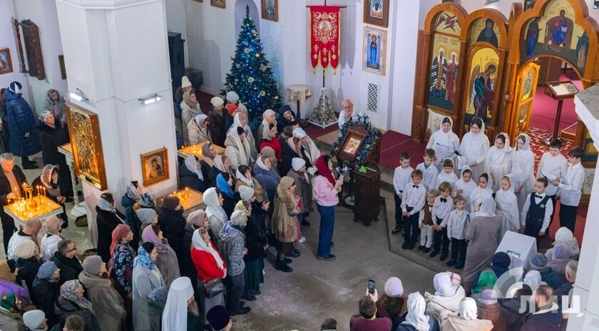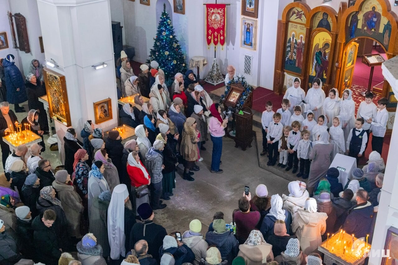 Воспитанники воскресной школы исполнили рождественские песни и колядки, прочитали стихотворения и представили обрядовые сценки, посвященные евангельским событиям.