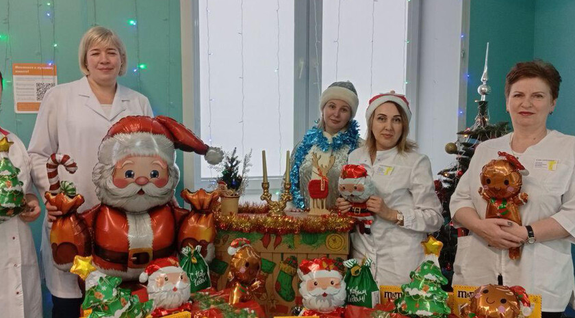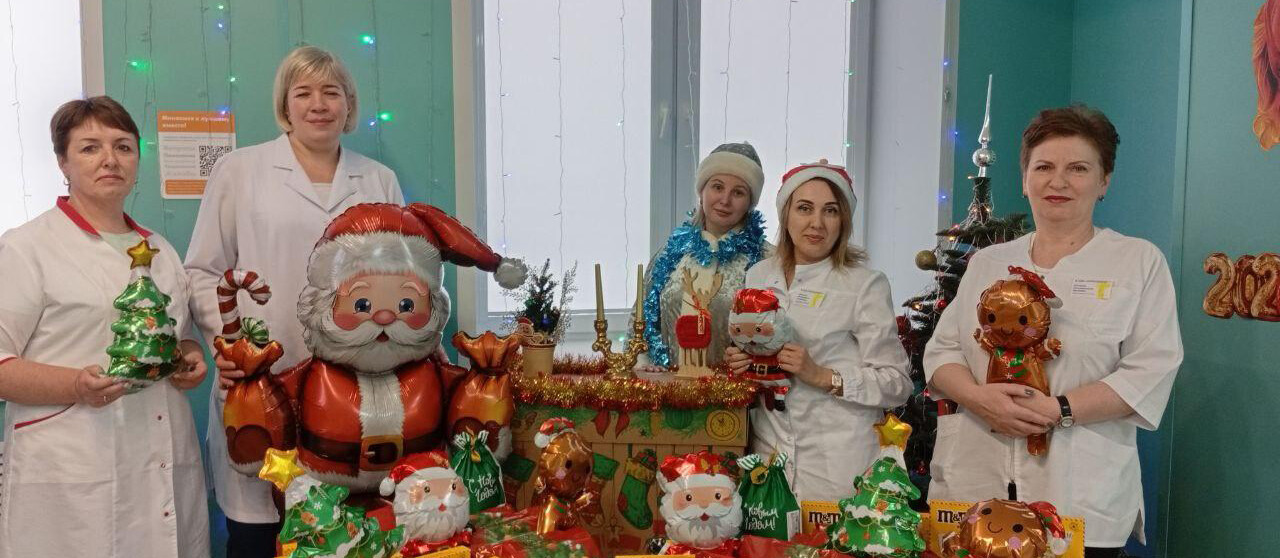 Сотрудники липецкой поликлиники № 2 передали подарки юным пациентам краснолучской больницы.