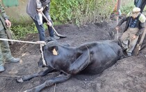 Утром 6 октября местная жительница сообщила на линию 101 Стаханова, что ее корова упала в яму. Прибывший к месту происшествия дежурный караул государственной пожарно-спасательной части № 22 установил, что "вдоль дороги, по которой ведут на выпас крупный рогатый скот, происходил ремонт водопроводных труб".