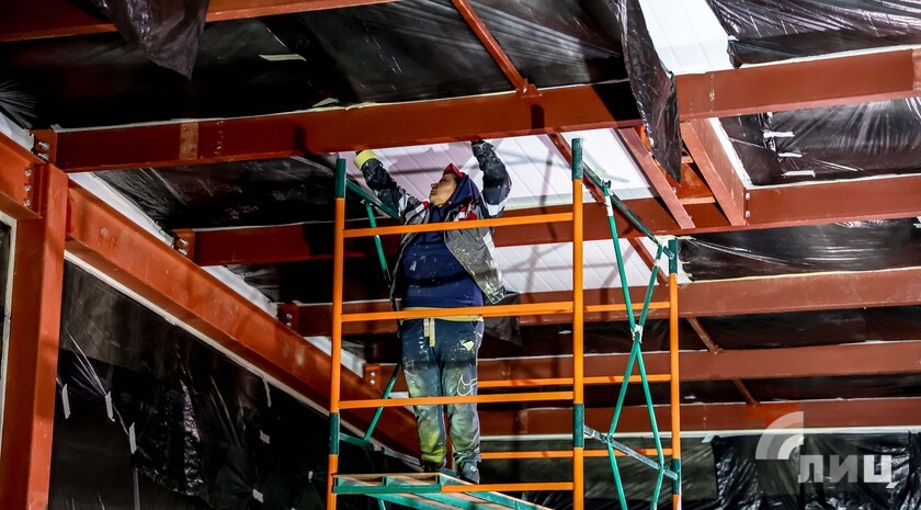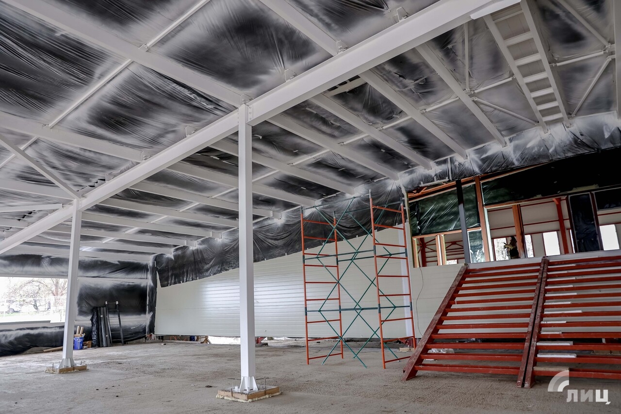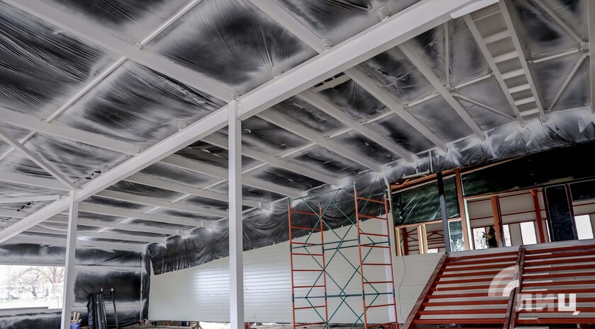 Руководитель объекта строительства Олег Летунов рассказал, что на данный момент завершен монтаж каркаса здания, стен и кровли. Ведутся работы по огнезащите металлоконструкций. Следующим этапом станет бетонирование чаши бассейна, установка и укрепление ее бортов, а затем монтаж систем водоподготовки и инженерного оборудования.