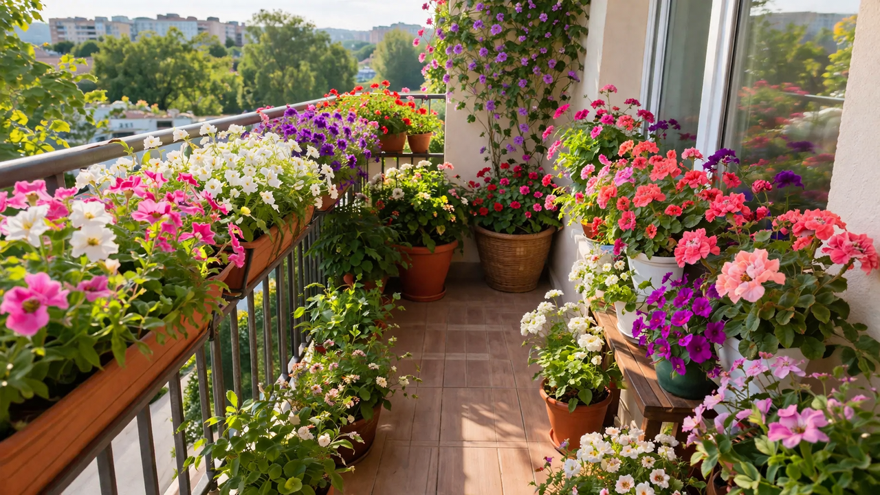 Успех балконного озеленения во многом зависит от выбора культур. Для открытых пространств лучше всего подходят неприхотливые и устойчивые к перепадам температуры растения. Классикой считаются петунии — они обильно цветут и хорошо переносят солнечные участки. Виола, напротив, предпочитает легкую полутень и способна радовать цветением вплоть до осени.
