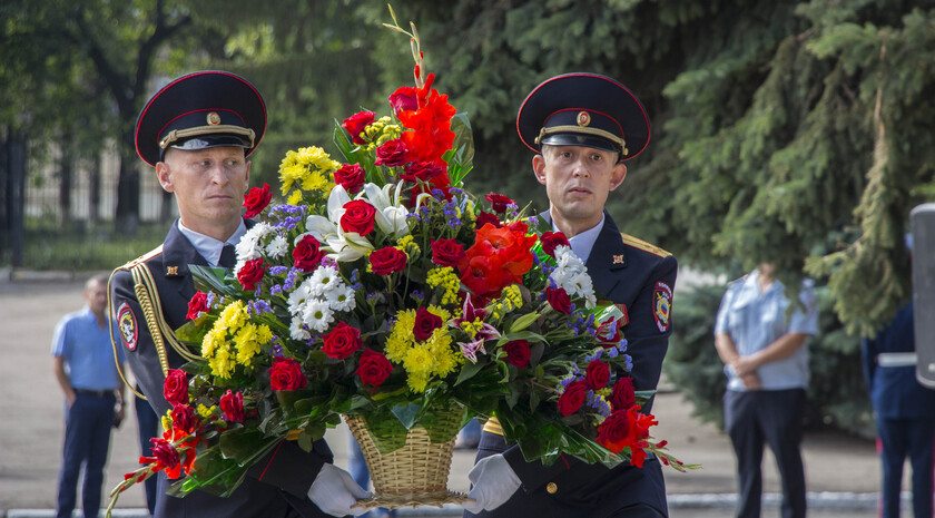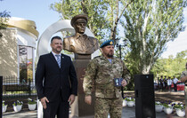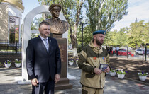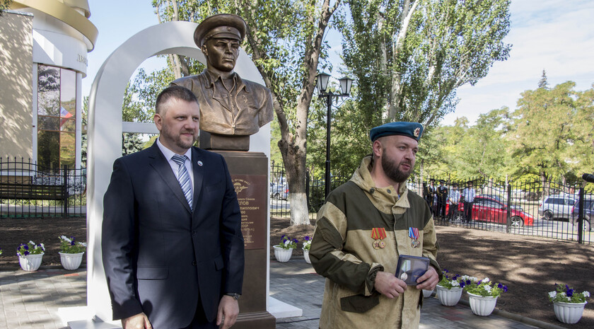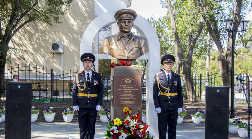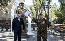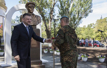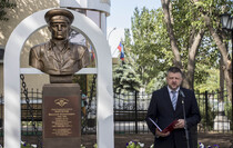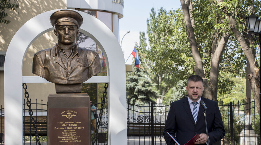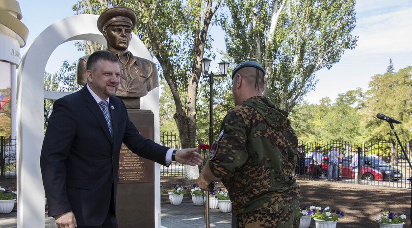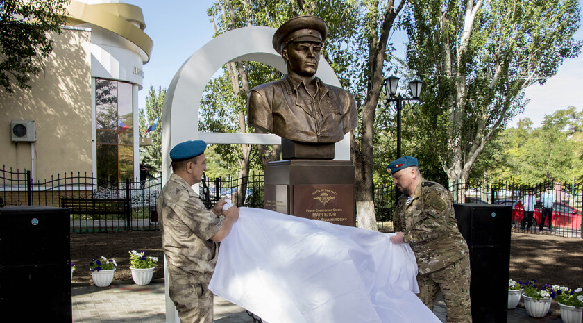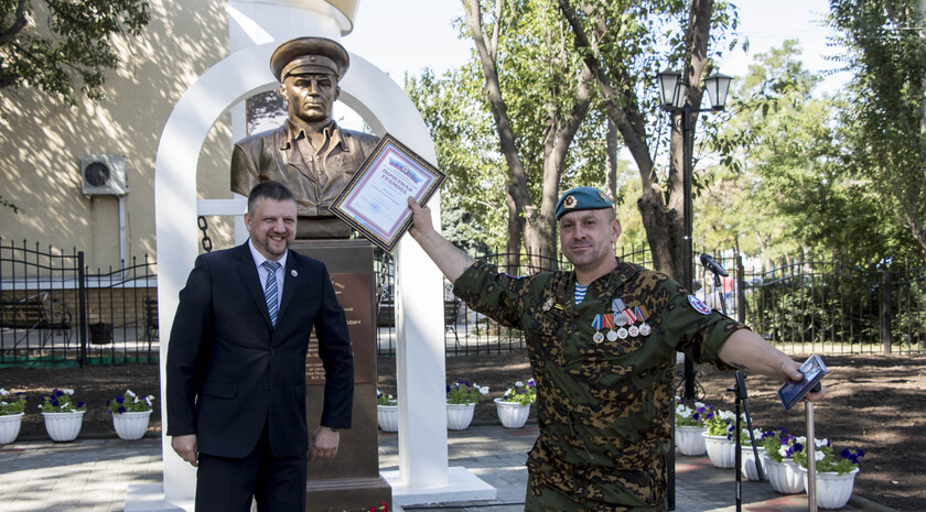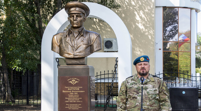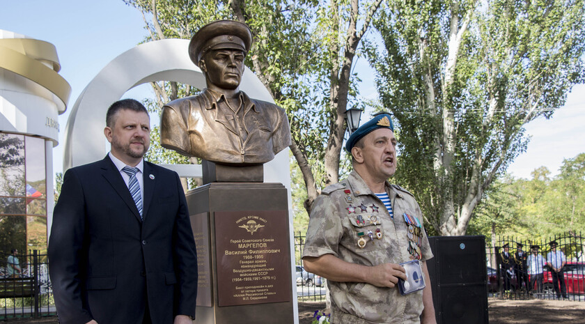 Почетное право открыть бюст Маргелова получили министр внутренних дел ЛНР Игорь Корнет и председатель Республиканской общественной организации "Союз десантников Луганщины" Александр Балабин.
