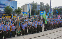 "90 лет с момента создания ВДВ - это целая эпоха, целое поколение ребят, выросших по принципу десантного братства. Десантники в числе первых выступили на защиту нашей Родины в 2014 году, продолжают нести службу и сейчас, и я уверен, что вы и дальше будете приумножать традиции десанта", - обратился к участникам митинга заместитель председателя Народного Совета ЛНР Андрей Сопельник.