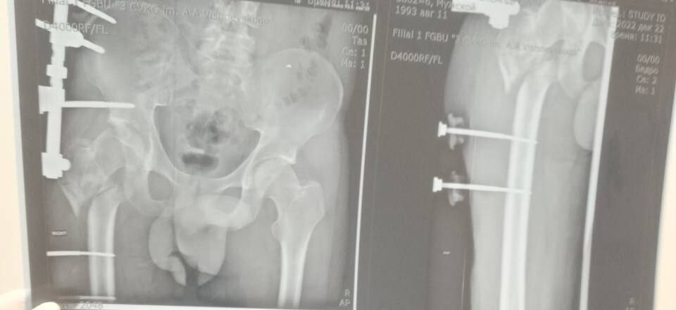 Она уточнила, что главная задача хирургов заключалась не просто в установке импланта, а в восстановлении биологической оси конечности и компенсации укорочения.