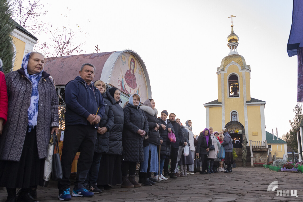 «Святыню доставил на подворье для молитвенного поклонения верующих депутат Народного Совета ЛНР, первый заместитель Секретаря Луганского регионального отделения партии „Единая Россия“ Василий Леонов. Верующие получают у этой иконы скорую помощь и утешение. Икона будет пребывать на подворье до 24 ноября», — сообщил архимандрит Иоанн.