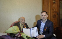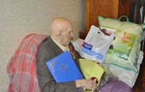 "На долю вашего поколения выпали тяжелейшие испытания Великой Отечественной войны и трудности послевоенного времени. Но Вы и ваши сверстники выстояли и восстановили разрушенную страну. В день вашего юбилея и в преддверии Дня Победы говорим вам спасибо. Здоровья вам, бодрости и оптимизма", - обратился к юбиляру глава горадминистрации.