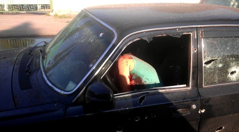 Я увидел стоящую по центру дороги "Волгу". Наличие машин на улице уже успело стать чем-то необычным. Подъехав ближе, я понял, почему она стоит. Слева от нее, метрах в четырех, на уровне переднего колеса была воронка от мины, машина имела множественные пробоины от осколков. Я остановился и вышел из машины – со своего водительского места я видел лишь нижнюю часть тела водителя. Помощь была не нужна, помимо множественных отверстий в теле, у него практически отсутствовала голова. Все, что от нее осталось, - это фрагмент уха и часть нижней челюсти. Спортивные штаны и майка этого парня говорили о том, что к ополчению он не имеет никакого отношения. Просто ему крайне не повезло оказаться в это время в этом месте. Он оказался одним из тысяч жертв среди мирного населения.