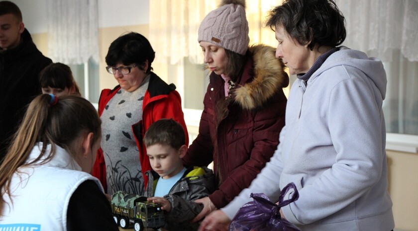 "Волонтеры общественного движения "Мир Луганщине" выдали 36 наборов с нескоропортящимися продуктами: консервами, соками, сгущенкой", - говорится в сообщении.