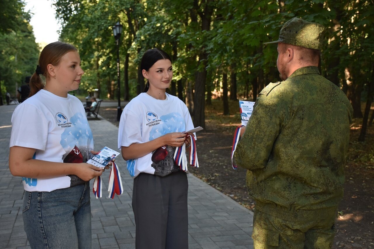 Ленточку-триколор и и памятку о том, как следует ее носить, студенты-волонтеры вручили десяткам горожан, прогуливающимся по аллеям парка имени Победы.