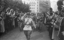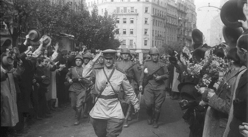 У героя войны нет ни одной личной фронтовой фотографии, но при этом он попал в кадры киносъемки парада освободителей Белграда.