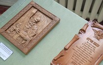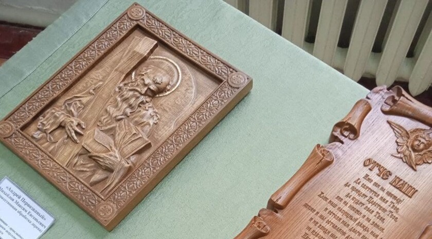 Автор представленных на выставке резных икон Максим Михайлов отметил, что он является представителем династии мастеров по обработке дерева.