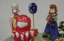 Воспитанница луганского дворца творчества детей и молодежи "Радость" Юлия Брюховецкая представила вниманию посетителей куклы-мотанки.
