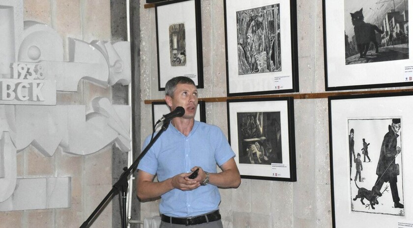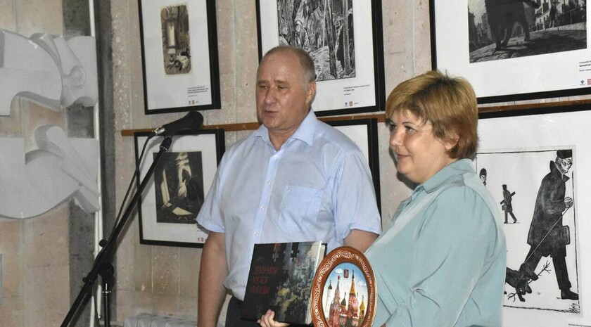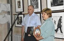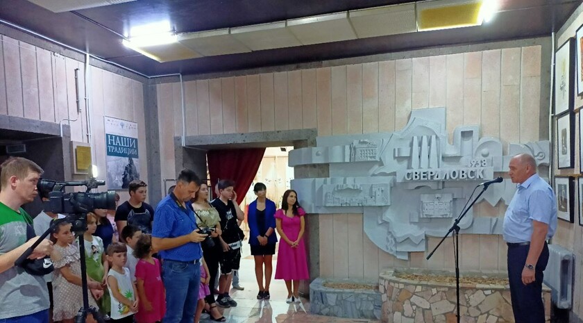 В ходе торжественного открытия выставки Дичко обменялся памятными подарками с директором Свердловского городского краеведческого музея Ольгой Матвиенко.