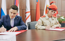 "Начальник главного штаба Всероссийского детско-юношеского военно-патриотического движения "Юнармия" Никита Нагорный подписал от лица движения соглашение о взаимодействии и сотрудничестве с военно-патриотическим движением "Молодая гвардия – Юнармия" ЛНР и ДНР", – говорится в сообщении.