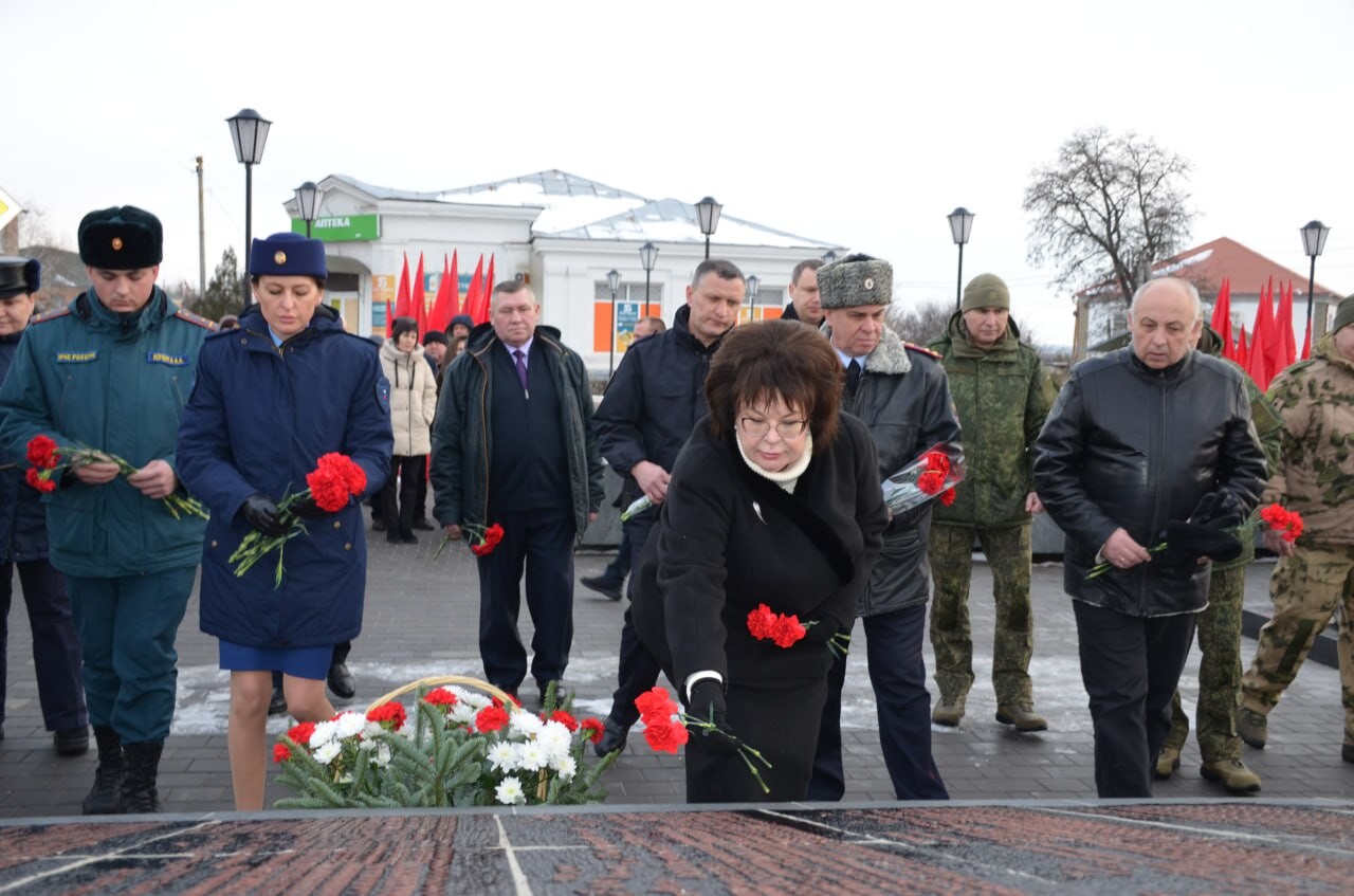 Собравшиеся минутой молчания почтили память воинов-земляков, павших как в годы Великой Отечественной войны, так и в ходе специальной военной операции, после чего возложили цветы к братской могиле советских солдат, а также к памятному знаку защитникам Донбасса и участникам СВО.