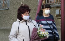 Почетное право открыть мемориальную доску было предоставлено заместителю главы администрации Стаханова Тамаре Ковтун и председателю городского совета ветеранов Евгению Шумейко.