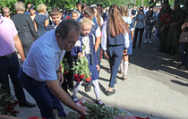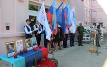 Участники митинга минутой молчания почтили память погибших земляков, зажгли свечи и возложили цветы к их фотографиям.